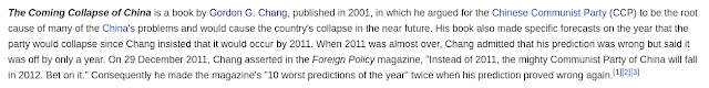 Peterだけでなく多くのコンサルティング・ファームや投資会社、政府系シンクタンクが数年のうちに中国が崩壊すると予想している